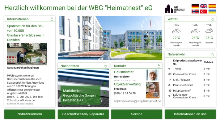 Das digitale schwarze Brett im Einsatz bei unseren Kunden aus der Wohnungswirtschaft.